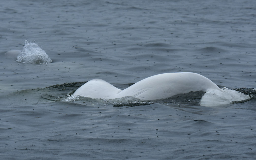 Bonne nouvelle pour les veaux! Sur 14 heures avec les bélugas, nous avons effectué quatre recensements et, en tout, 10 veaux ont été observés. Voici un épisode impressionnant de la semaine.