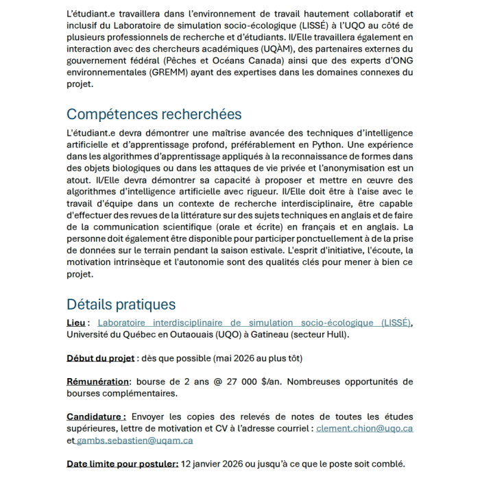 Pour appliquer, envoyez votre candidature (C.V., lettre de motivation et relevés de notes) avant le 12 janvier 2026 à [email protected] et [email protected]